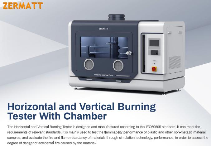 The Horizontal and Vertical Burning Tester is designed and manufactured according to the IEC60695 standard, It can meet the requirements of relevant standards. It is mainly used to test the flammability performance of plastic and other non-metallic material samples, and evaluate the fire and flame retardancy of materials through simulation technology, performance, in order to assess the degree of danger of accidental fire caused by the material.